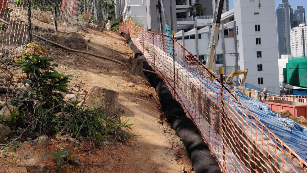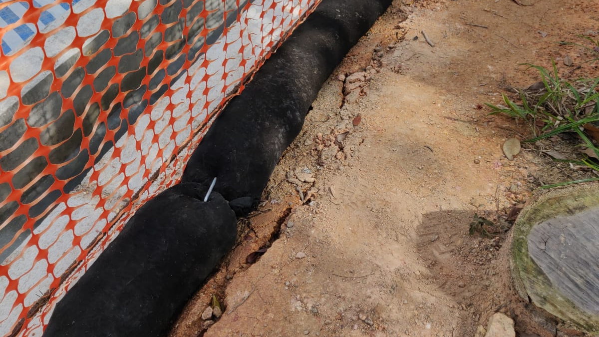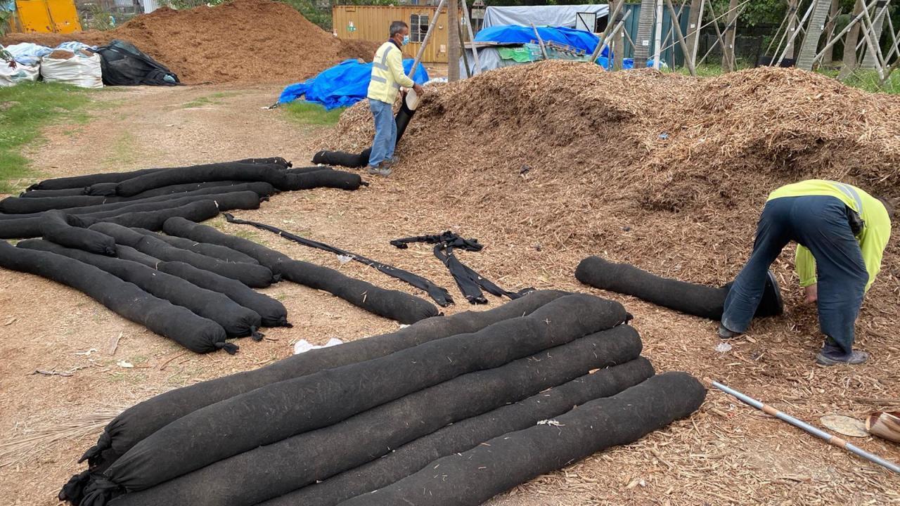 Silt Socks are one of our product. We collected felled trees and shredded them into wood chips. The wood chip were then filled in silt socks and laid at Police School Road Construction Site Boundary for sediment control.